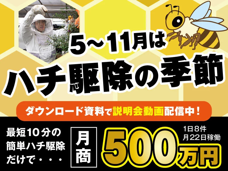 5月~11月が繁忙期!ハチ駆除の季節!ハチ駆除をメインに12月~4月は他事業で安定収益確保